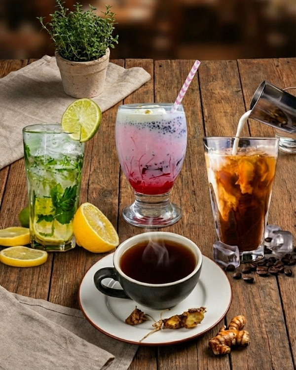 Hot Ceylon tea infused with ginger. Sweetened to taste—warm, spicy, and soothing.