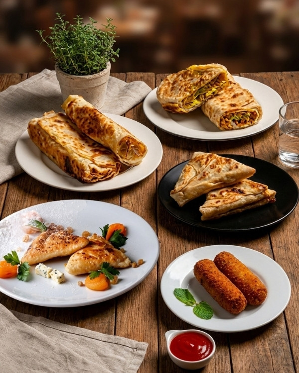 Crispy, golden fried rolls stuffed with spicy beef, chicken, veggie, or fish. A classic quick bite.