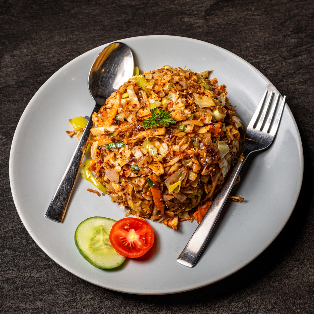 A bold fusion of Indonesian classic and Sri Lankan spice—this fried rice dish is packed with flavor and fire! A spicy, satisfying meal that brings the street flavors of Colombo and Jakarta together on one plate.