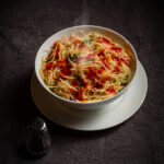 Egg noodles stir-fried with chicken, veggies, spices & chili sauce. A bold street-style classic.